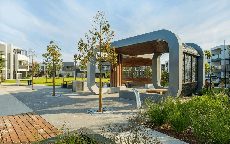 Nestled along the banks of the Georges River, Georges Cove Residences in Moorebank redefined urban living by blending natural surrounds with the essentials of family life. This community comprised 180 architecturally designed homes by the award-winning Mirvac Design team, offering a range of terraces, luxury freestanding, and attached homes set among beautifully landscaped streets. At the heart of Georges Cove is the Community Green, a central gathering space featuring a swimming pool, barbecue facilities, picnic tables, a children’s playground, and an outdoor fitness area. Residents enjoyed relaxing with family, socialising with neighbours, and staying active throughout the summer holidays.